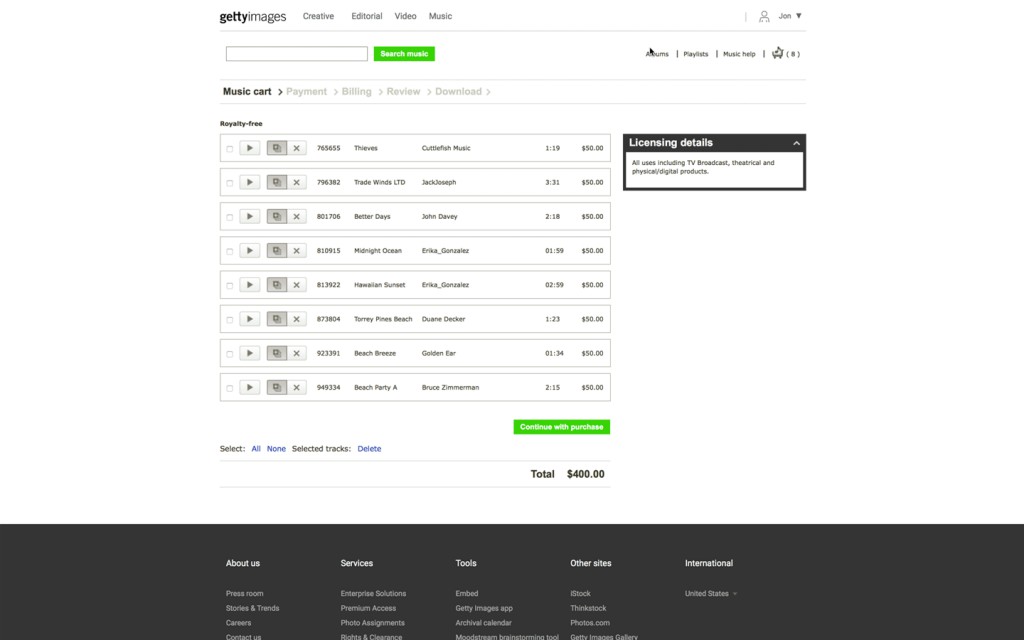 客户是优质库存图片和视频的全球供应商。Intspeed 将音乐资产完全集成到他们现有的平台中。Getty 音乐结合了音频预览、转码、捆绑许可和付款结账,为多媒体内容许可和购买的消费者带来流畅的用户体验。